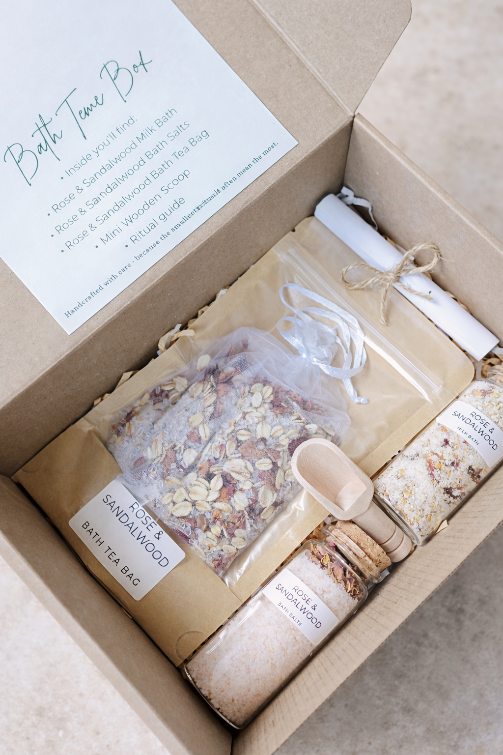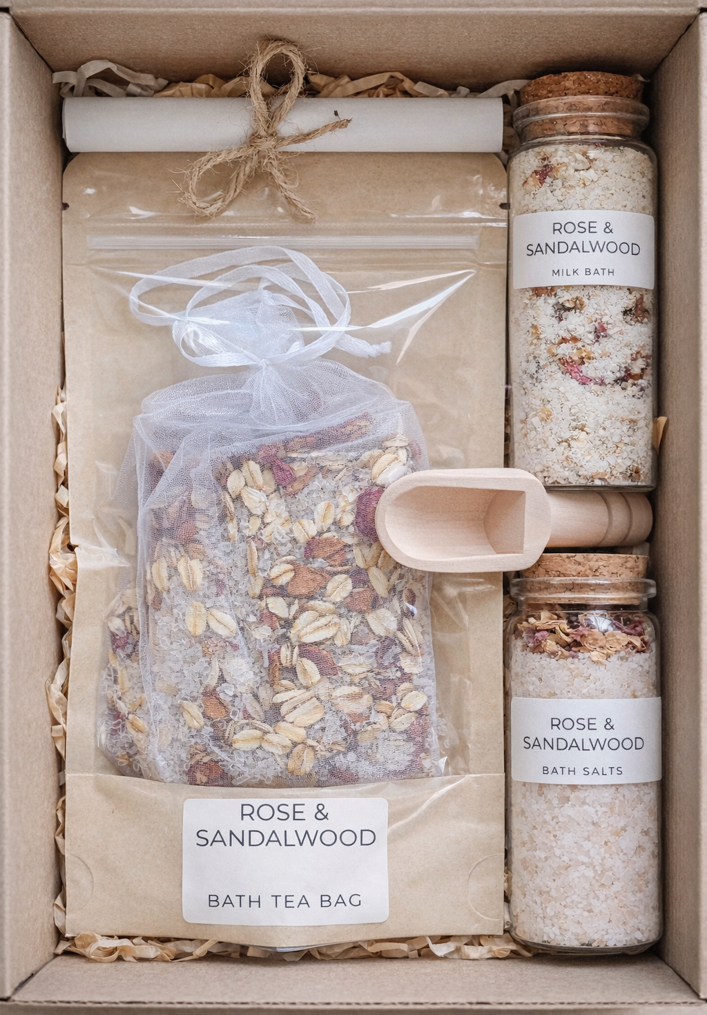 Create a moment of calm and indulgence with this beautifully curated bath time box, designed to turn everyday bathing into a luxurious self-care ritual. Featuring a trio of rose and sandalwood bath essentials, each product works together to soften the skin, relax the body, and gently soothe the senses.